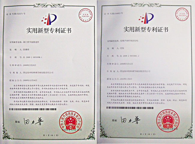 近日,西安秦申公司應(yīng)用于火力發(fā)電廠高溫高壓閥門的 “閥門用節(jié)流限速件”及“低噪聲閥桿閥套結(jié)構(gòu)”榮獲國家兩項(xiàng)實(shí)用新型專利。