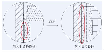 常見的超臨界機(jī)組高加正常疏水閥,閥芯大多采用非等徑設(shè)計(jì),導(dǎo)致閥芯閥套之間存在空腔,容易容留淅出物,在閥門工作過程中,易擠塞進(jìn)導(dǎo)向間隙,造成卡澀,從而拉毛套筒內(nèi)壁及和閥芯外表面,對(duì)閥內(nèi)組件造成較大損壞。
