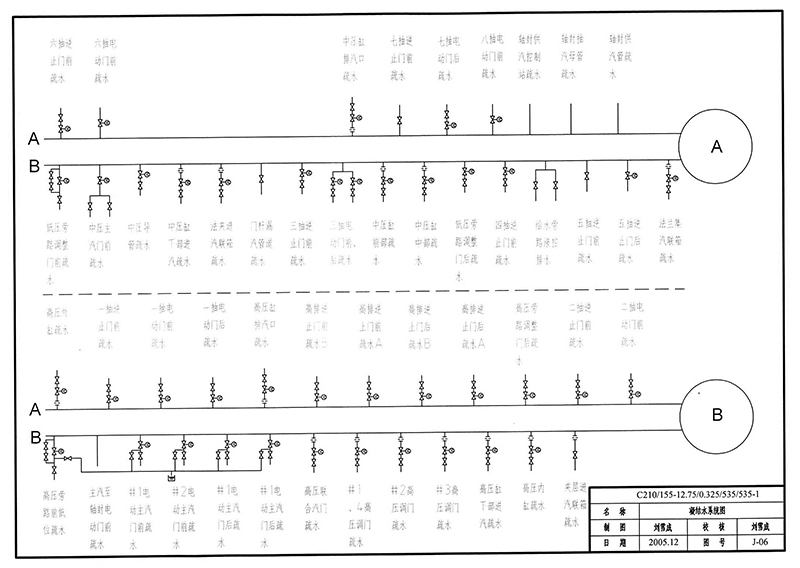 平東熱電有限公司#6、#7汽輪機(jī)為哈爾濱汽輪機(jī)廠生產(chǎn)的C140/ N210-12.75/535/535/0.981型超高壓、一次中間再熱、兩缸兩排汽、采暖用可調(diào)整抽汽、供熱凝汽式汽輪機(jī),分別于2006年7月、9月通過168小時試運投入試生產(chǎn)。經(jīng)過一年來的運行實踐,公司機(jī)組發(fā)現(xiàn)疏水系統(tǒng)不能滿足安全、經(jīng)濟(jì)運行的需要(平東疏水系統(tǒng)簡圖見附圖1),為解決該問題,平東熱電有限公司會同河南電力試驗研究院對疏水系統(tǒng)進(jìn)行了檢查、分析,并對其它200MW等級機(jī)組的疏水系統(tǒng)進(jìn)行了調(diào)研,調(diào)研、分析由平東熱電有限公司黃智、尹金亮、潘富停、李穎杰等與河南電力試驗研究院付晨鵬共同參加,經(jīng)研討得出優(yōu)化建議如下。